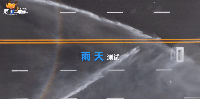 雨天駕駛的核心痛點(diǎn)是能見(jiàn)度下降與路面附著力降低,雙重因素疊加會(huì)大幅增加碰撞風(fēng)險(xiǎn)。為還原真實(shí)中到大雨環(huán)境(測(cè)試場(chǎng)地噴頭雨量不足),我們動(dòng)用兩臺(tái)灑水車(chē)對(duì)向同步噴灑形成密集雨幕,在道路末端放置假車(chē)障礙物,車(chē)輛開(kāi)啟雨霧模式駛?cè)霚y(cè)試區(qū)域,測(cè)試車(chē)速?gòu)?0km/h逐步提升至90km/h。